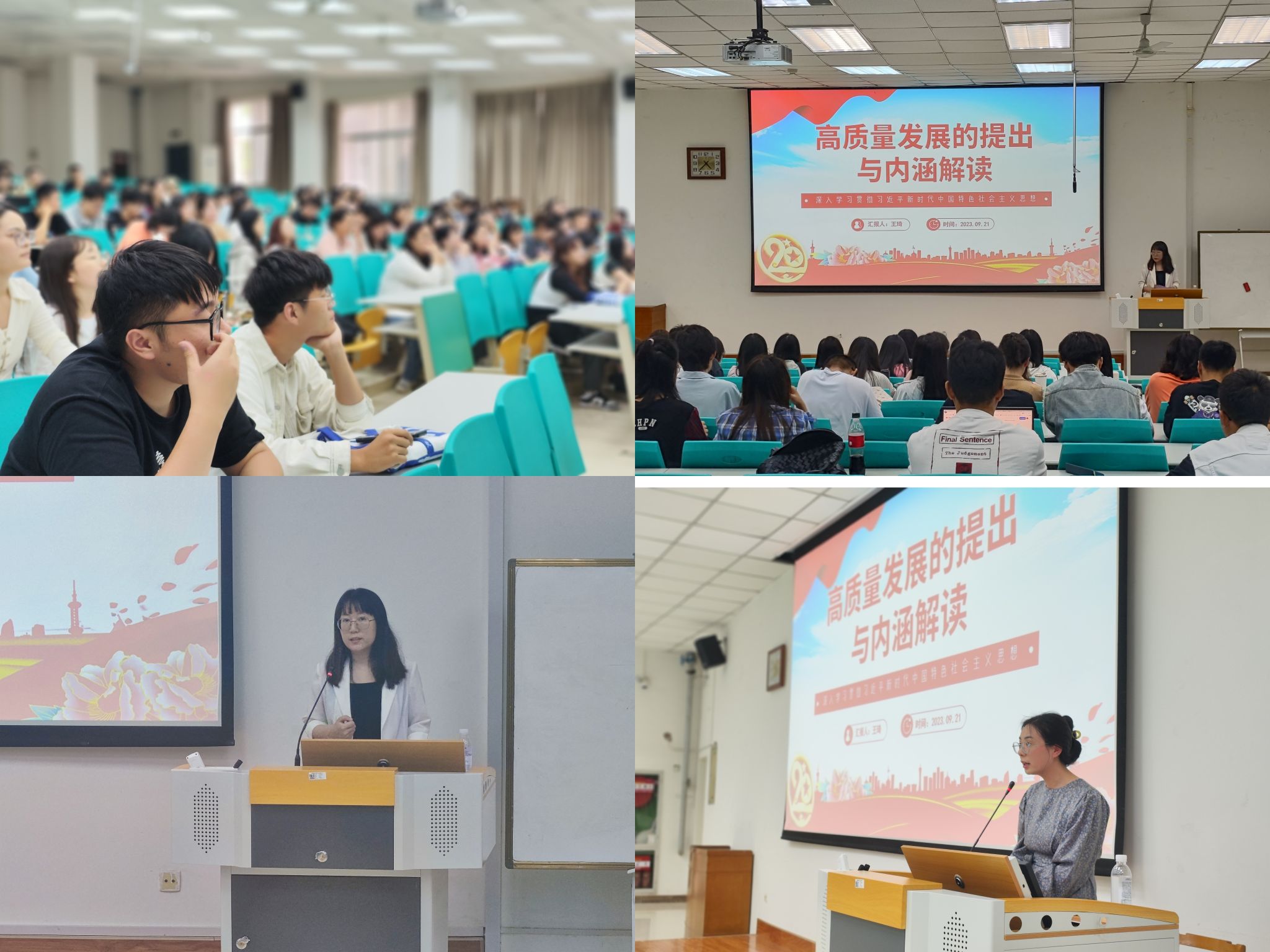 王琦作了题为“高质量发展的提出与内涵解读”主题宣讲。通过多角度视角和多维度举例,她将党的二十大报告中提到的“高质量发展是全面建设社会主义现代化国家的首要任务”这一内容作了详细阐释和解读。她立足于党的二十大精神,结合研究生日常学习、生活和工作,倡导研究生新生同学们要时刻把个人行动与党的战略谋划紧密结合起来,为建设社会主义现代化国家添砖加瓦。