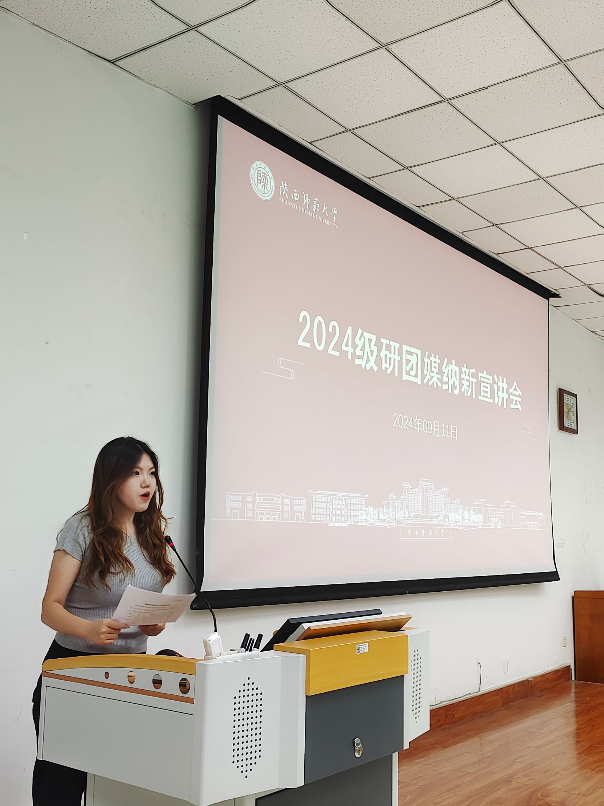 为帮助研究生新生深入了解公司团委、研究生会、微澜融媒体中心等研究生组织,提供了解与交流的平台,激发新生参与热情,汇聚青春力量,近日,公司研究生组织纳新宣讲会在长安校区文津楼举行,2024级全体研究生参加了宣讲会。宣讲会由团委副书记豆璇主持。