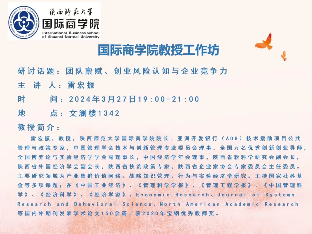 永利yl23411教授工作坊——团队禀赋、创业风险认知与企业竞争力