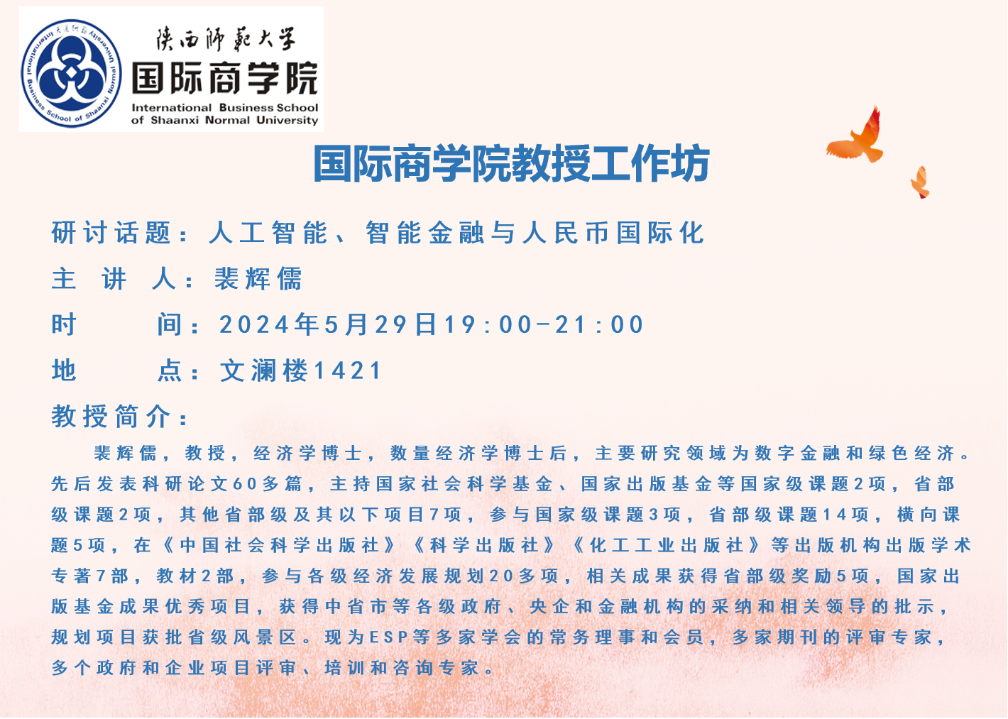 学术讲座预告——Global Geo-economic Fragmentation and the Chinese Economy(全球地缘经济碎片化与经贸发展)