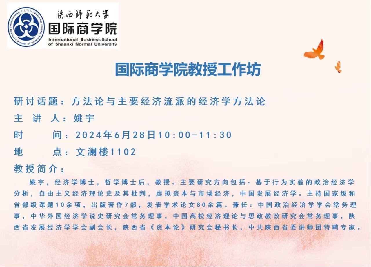 永利yl23411教授工作坊——方法论与主要经济流派的经济学方法论