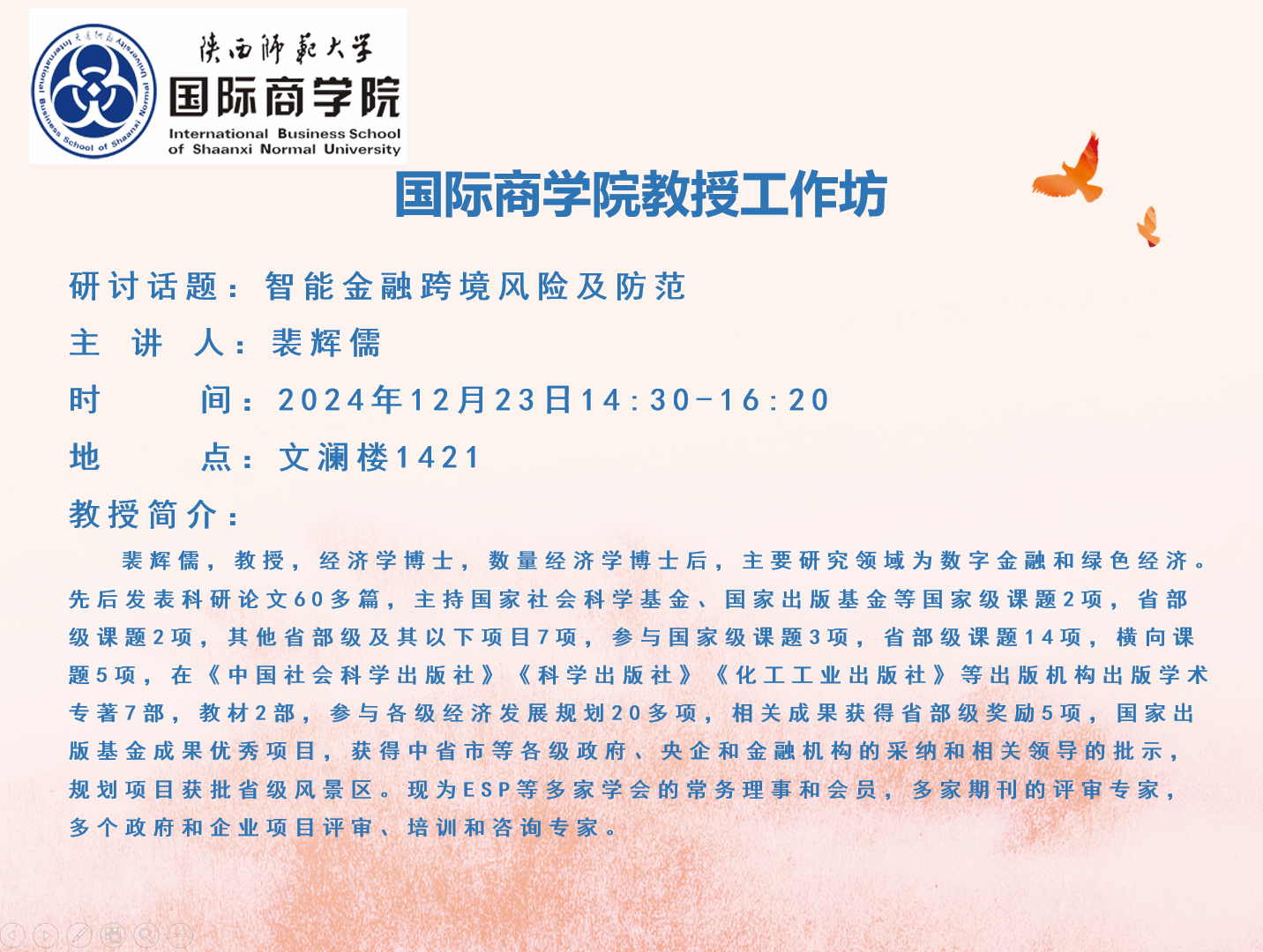 永利yl23411教授工作坊——智能金融跨境风险及防范