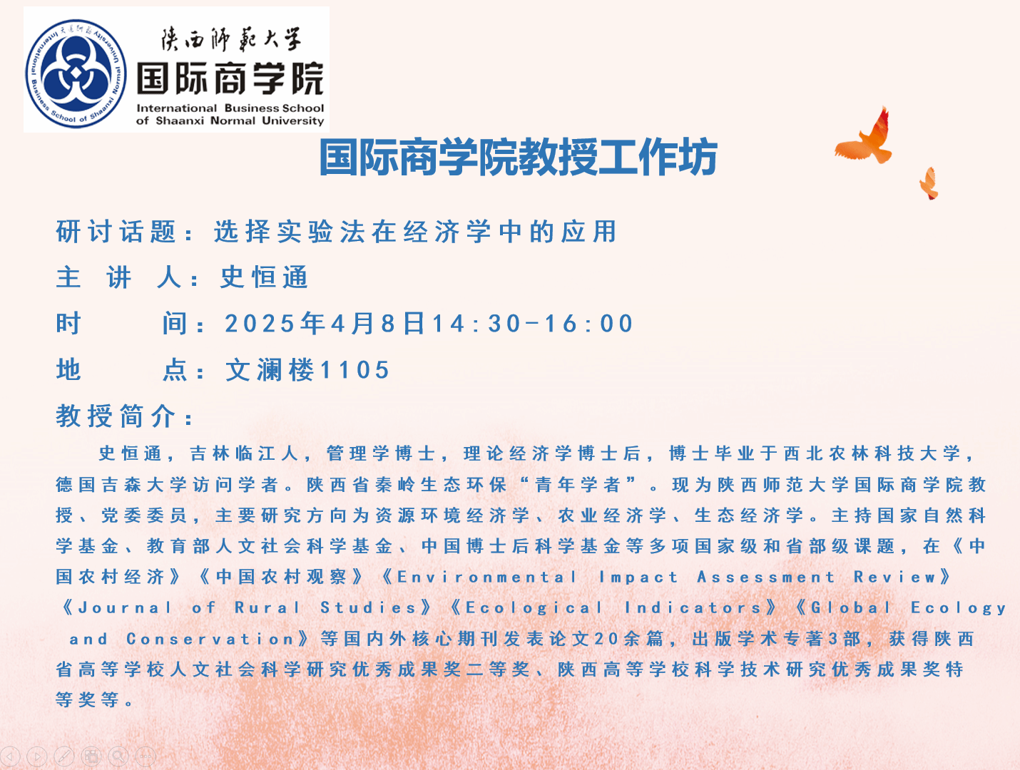 永利yl23411教授工作坊——选择实验法在经济学中的应用