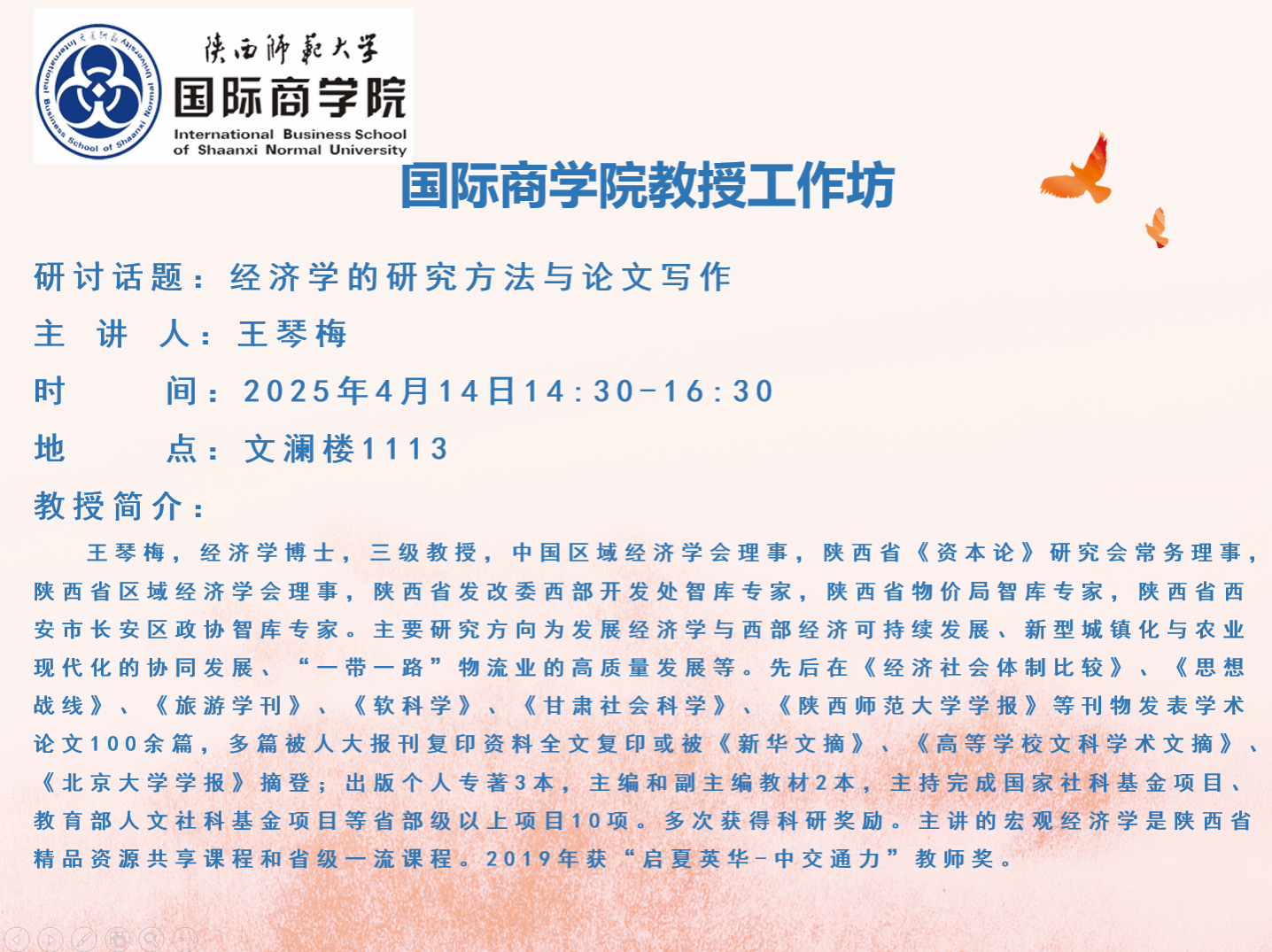 永利yl23411教授工作坊——经济学的研究方法与论文写作