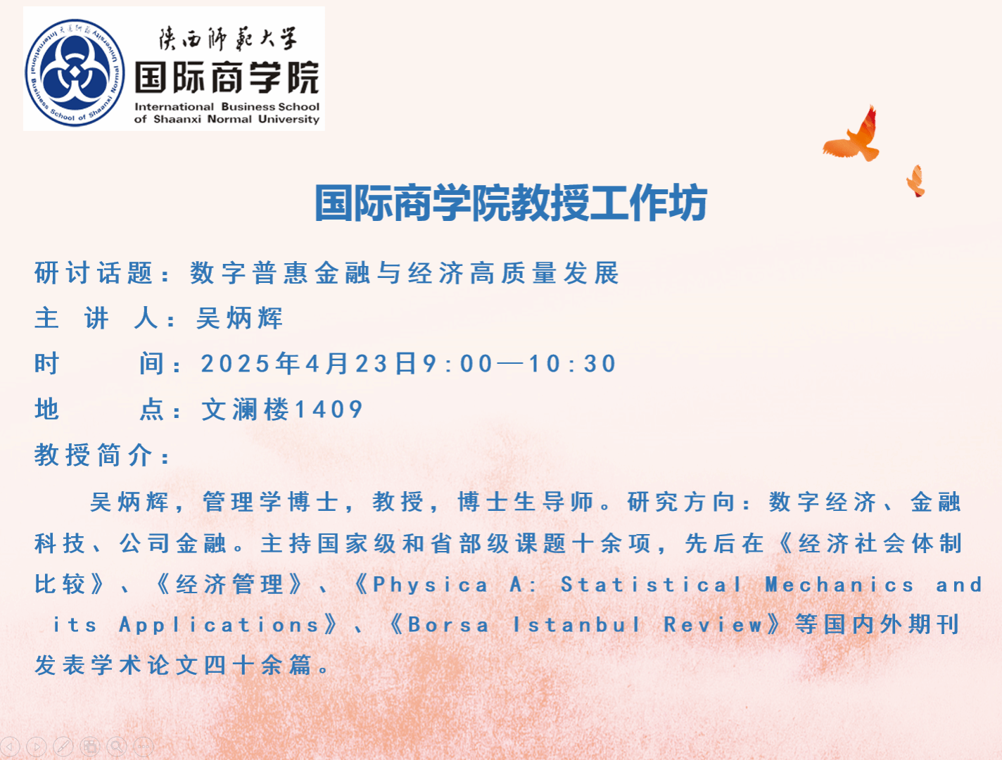 永利yl23411教授工作坊——数字普惠金融与经济高质量发展