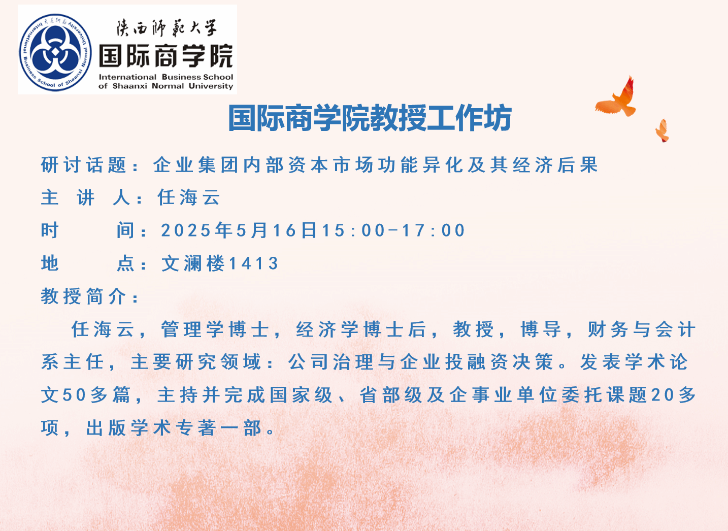 永利yl23411教授工作坊——企业集团内部资本市场功能异化及其经济后果