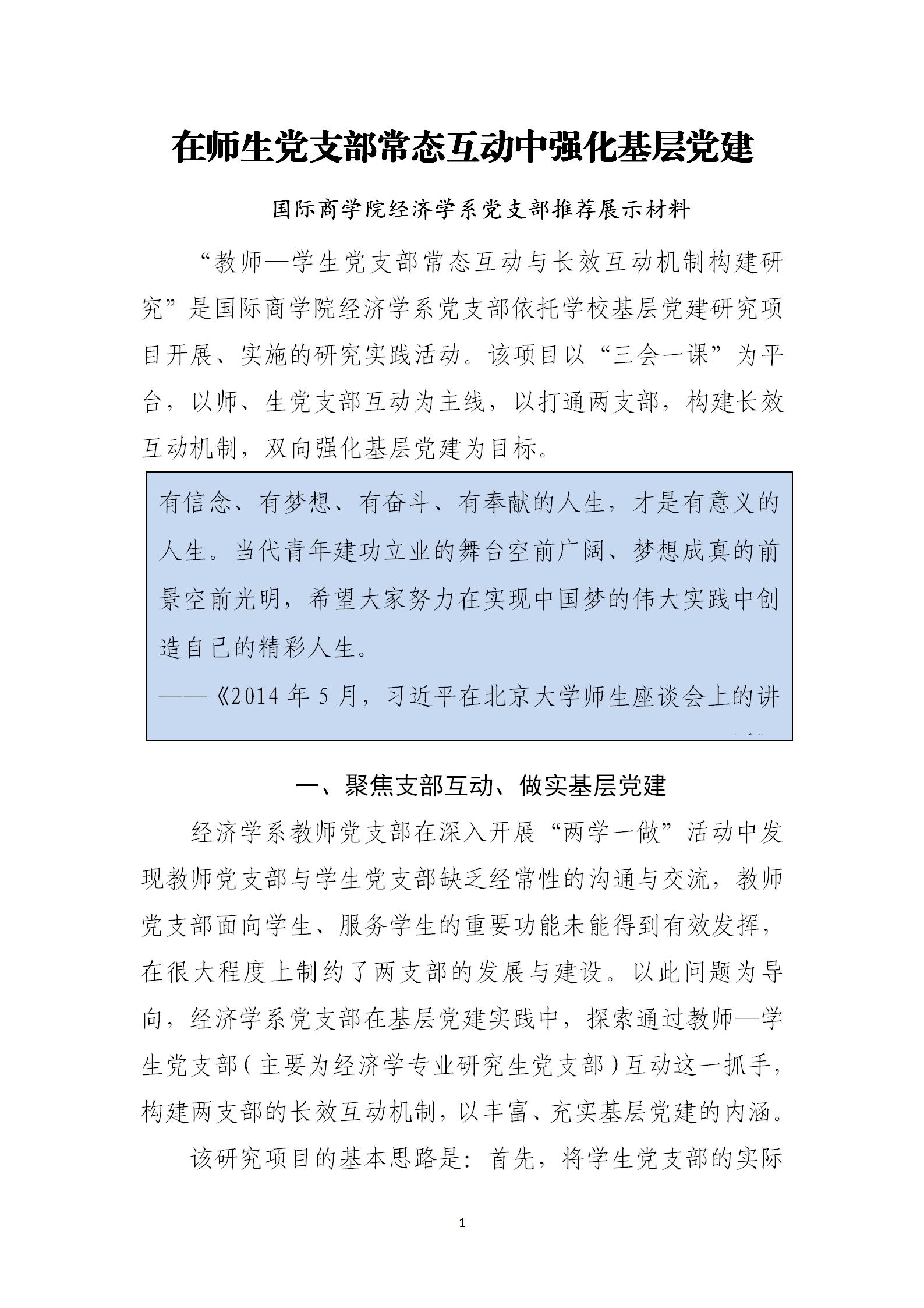 在师生党支部常态互动中强化基层党建——永利yl23411经济学系党支部推荐展示材料
