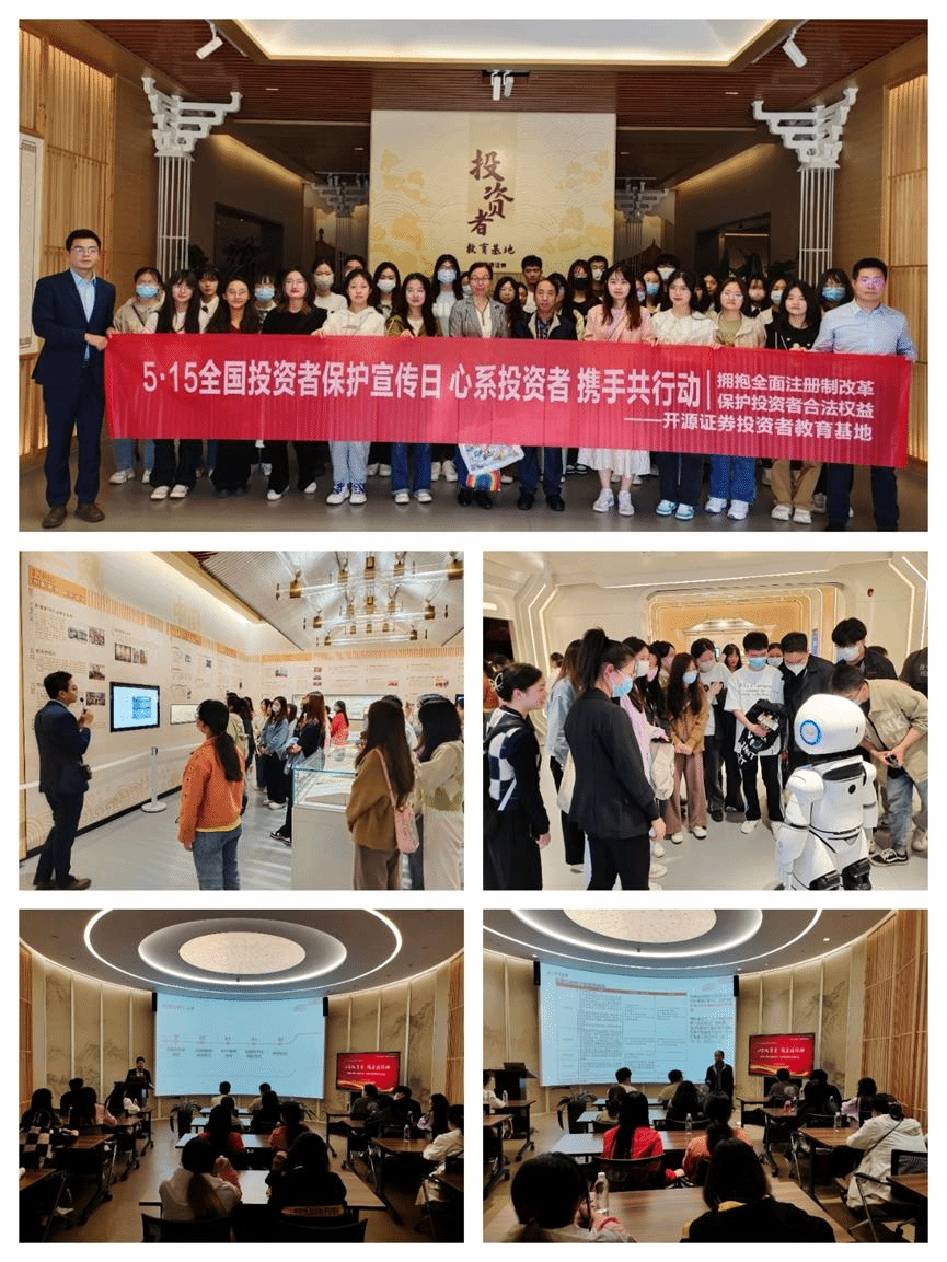 5月11日下午14:00,开源证券投教基地开展“5·15全国投资者保护宣传日”主题活动,永利yl23411金融学系曹培慎老师、李淑娟老师带领金融2001班全体同学前往参与。活动通过基地参观和金融知识课堂两大环节向同学和老师全面介绍资本市场发展历程及当前市场规则变化。