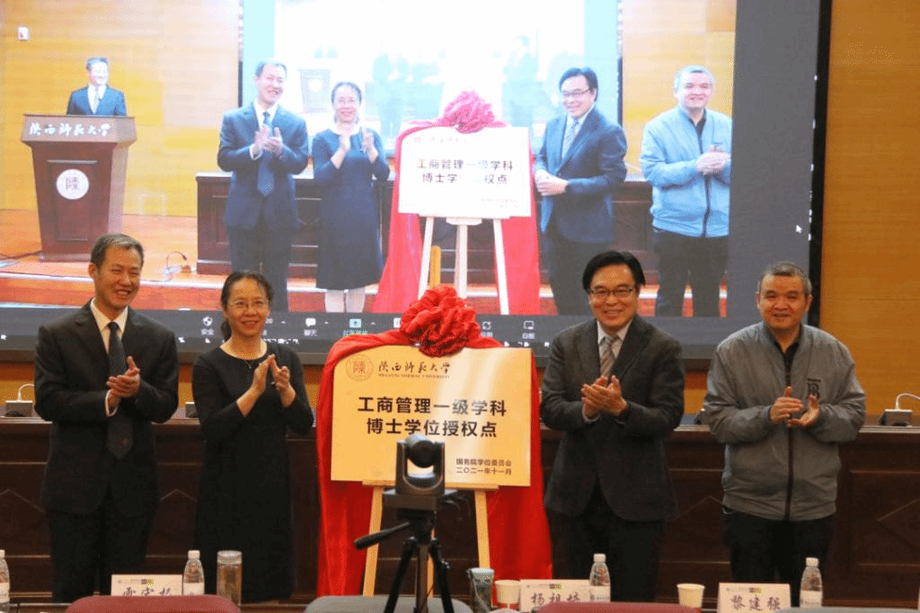 杨祖培副董事长、黎建强教授、蒋万胜教授、雷宏振经理共同为公司工商管理一级博士点揭牌。2021年,公司获批工商管理一级学科博士学位授权点,彰显了公司团队建设砥砺奋进,公司发展赓续创新。