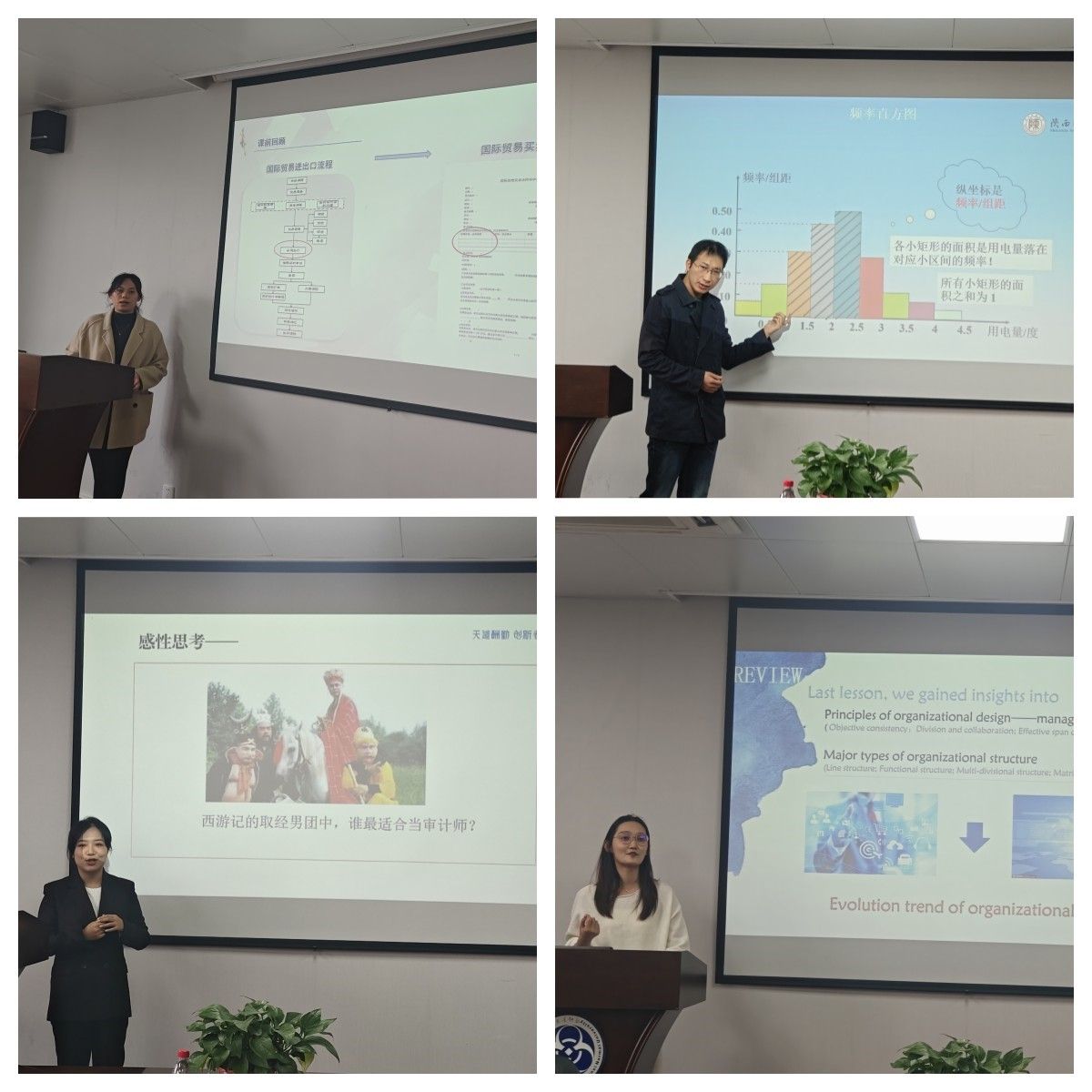 为给青年教师提供了一个展示才华、相互促进、共同提高的平台,2024年11月21日下午,公司在文澜楼1329会议室举行了第十六届青年教师教学基本功大赛,共有4名青年教师参加了比赛。丁越兰、沈剑、刘杰三位有丰富教学经验的老师担任评委。