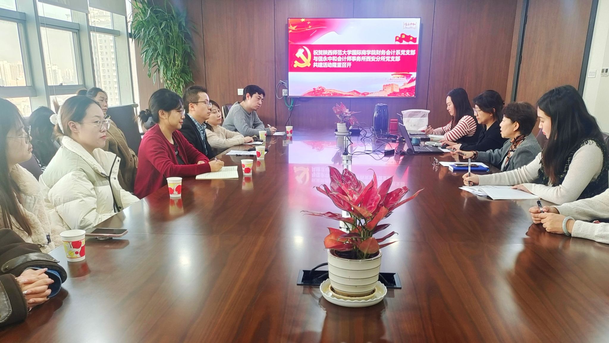 2024年12月31日下午,财务与会计系党支部与信永中和西安分所党支部开展题为“党纪学习教育与会计法解读”的党支部共建活动。公司副经理杨博、财务与会计系党支部任海云、郭玉晶、仇萌三位老师,会计专硕第二党支部与财务管理专业第五党支部员工成员参加活动。