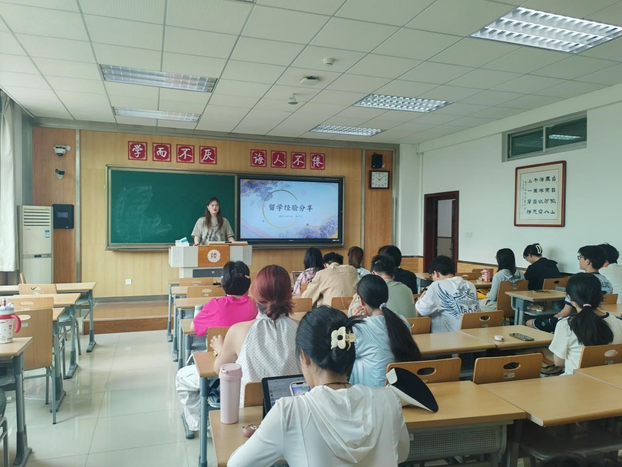 分享会围绕海外留学、国内考研和职场就业三大主题展开。在留学这一板块,申珍宁学姐已被香港大学录取,她为我们详细介绍了名校申请的流程、面试经验、跨专业申请优势以及选校策略和雅思的备考方法。在职场就业上,张林波学长是21级本科毕业生,即将入职理想汽车,他为我们详细介绍了求职需要注意的事项,信息获取、修改简历、面试准备等以及收到offer后应该做什么以及注意的事项,帮助同学们提升就业竞争力。