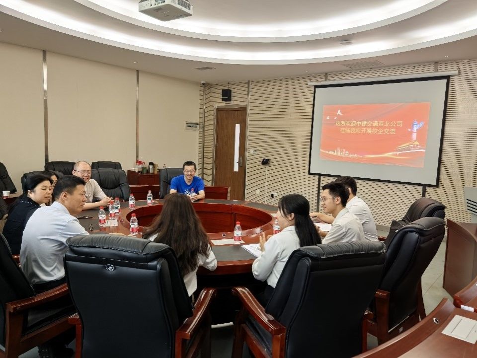 2025年7月2日下午,中建交通西北公司人力资源部经理韩丽梅、高级人事经理杜亚男以及综合部、法务部的工作人员来公司开展校企交流活动。公司副书记邱远航、商业智能与数据科学系李雪、杨娜、王国弘、兰娟丽、李剑老师参与交流座谈,交流活动由系主任李雪主持。