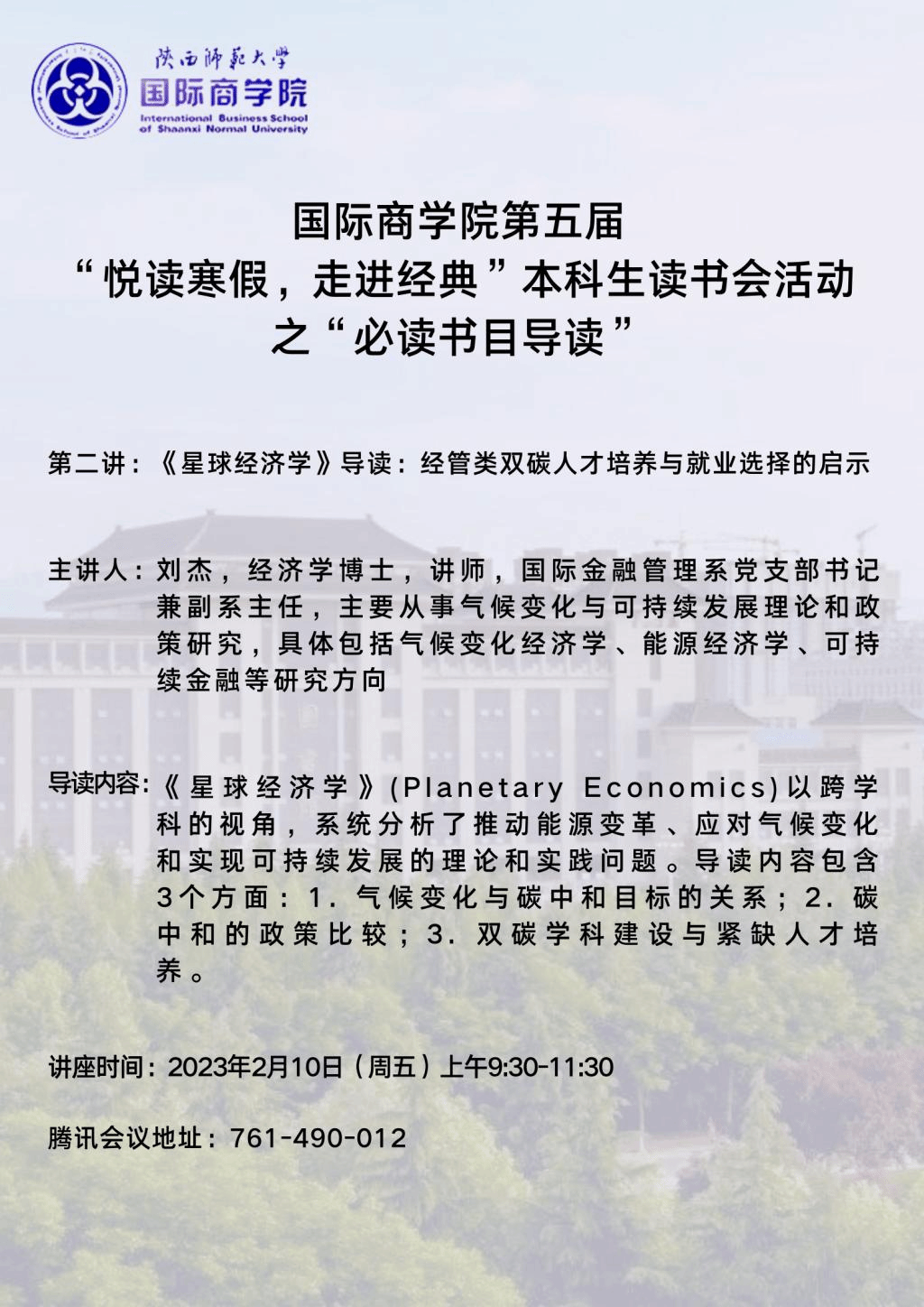 永利yl23411第五届“悦读寒假,走进经典”本科生读书会活动之“必读书目导读”